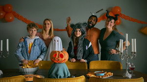 Woman handing out spinach puffs